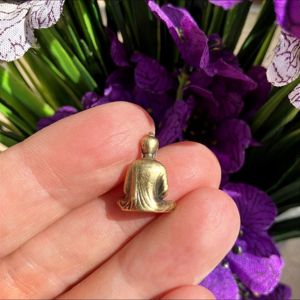 Mini Zazen Buddha: 1,6 cm i gylden kobberlegering