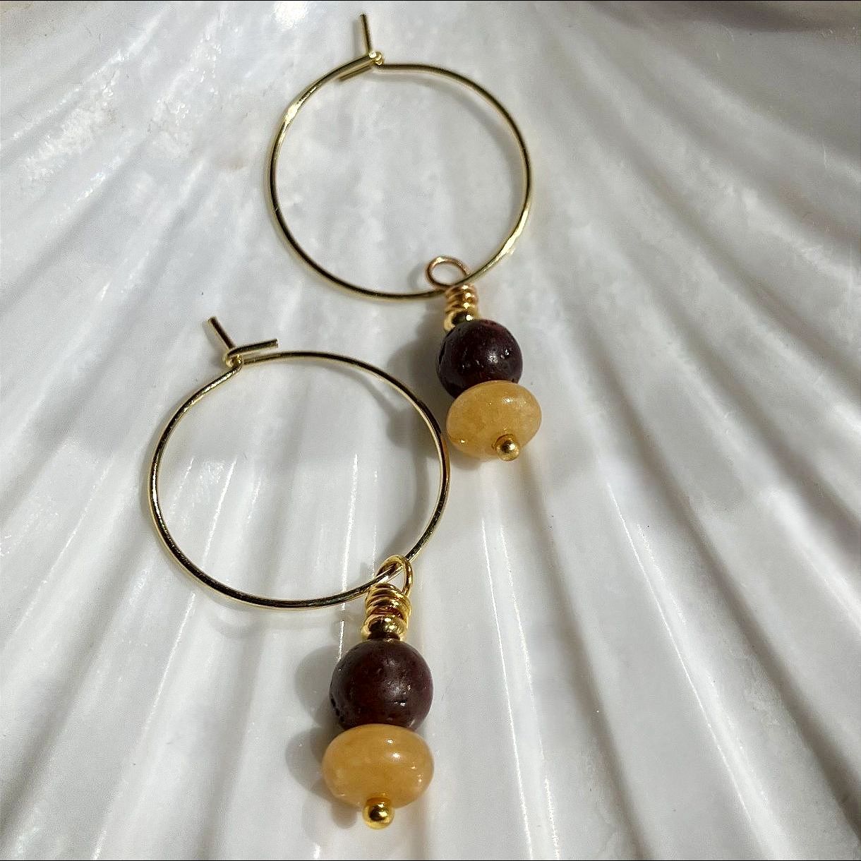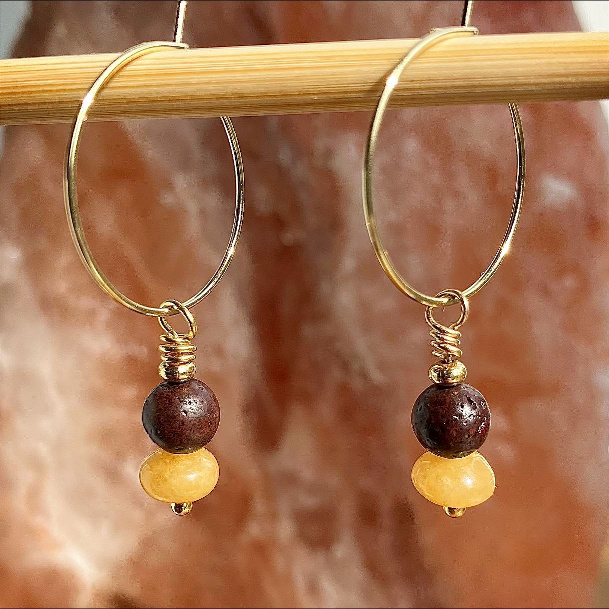 Sammen skaber gul jade og brun lavasten en harmonisk balance, der støtter dig i din hverdag og inspirerer til en positiv livsanskuelse.