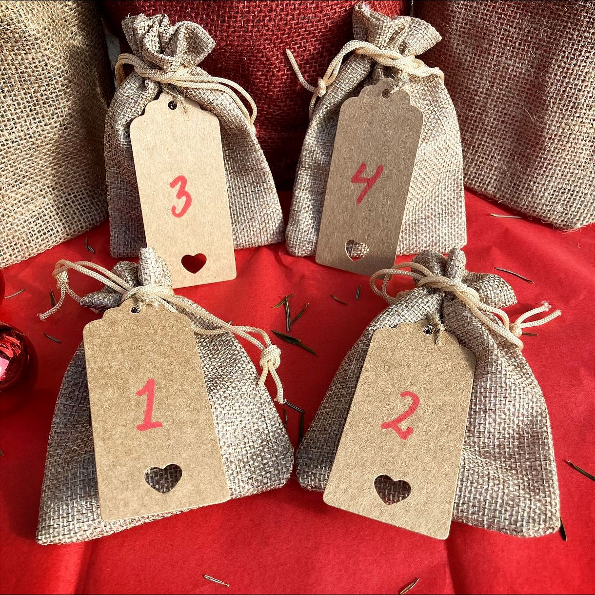 Hver gave ligger i en lille pose nummereret fra 1 til 4. Der medfølger en håndskrevet note om krystallerne, som hjælper dig med at forstå deres energi, og hele sættet er samlet i en lille hørpose. En enkel og sanselig gaveoplevelse til fire søndage i advent.
